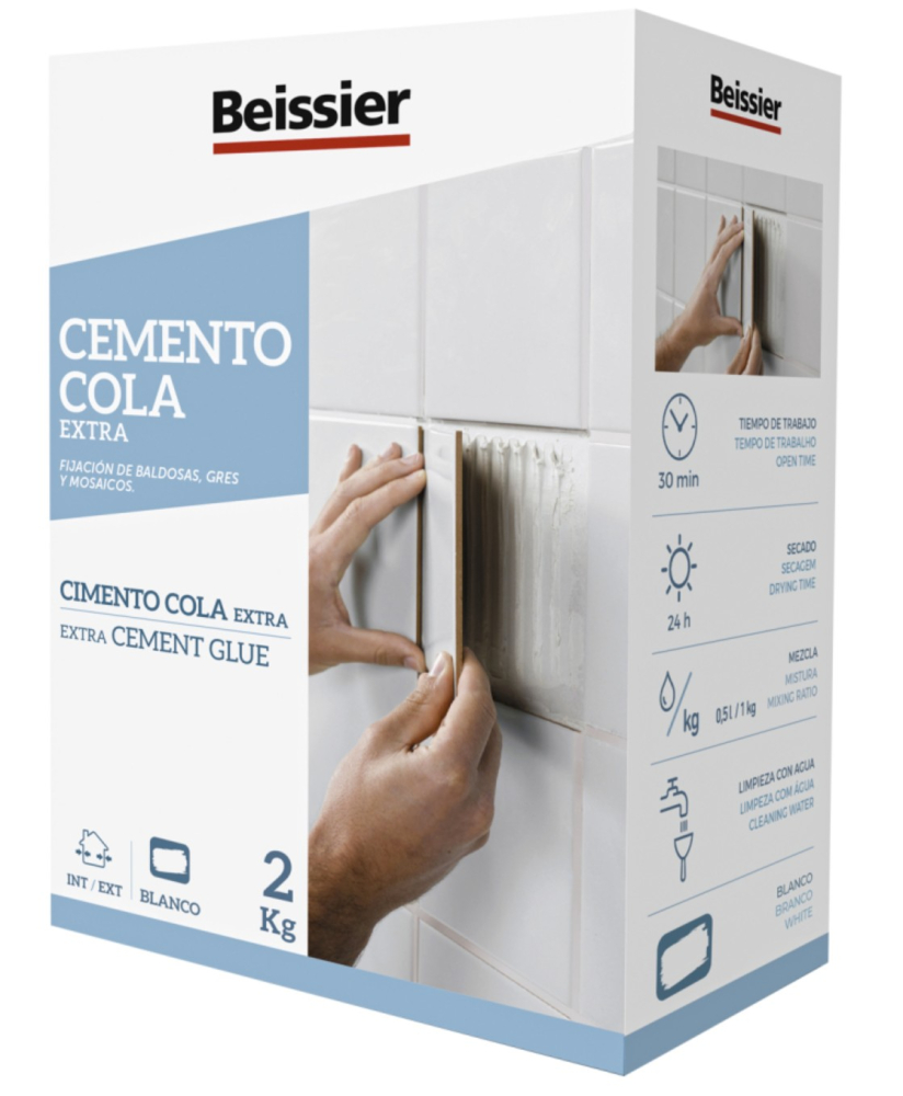 Beissier Cemento Cola Extra 2 kg este un adeziv cimentos alb, cu flexibilitate ridicata, destinat montarii placilor ceramice pe pereti si pardoseli. Produsul este potrivit pentru gresie, faianta, mozaic, placi ceramice, klinker, placi gresificate si piatra naturala compatibila, insensibila la schimbari de culoare.